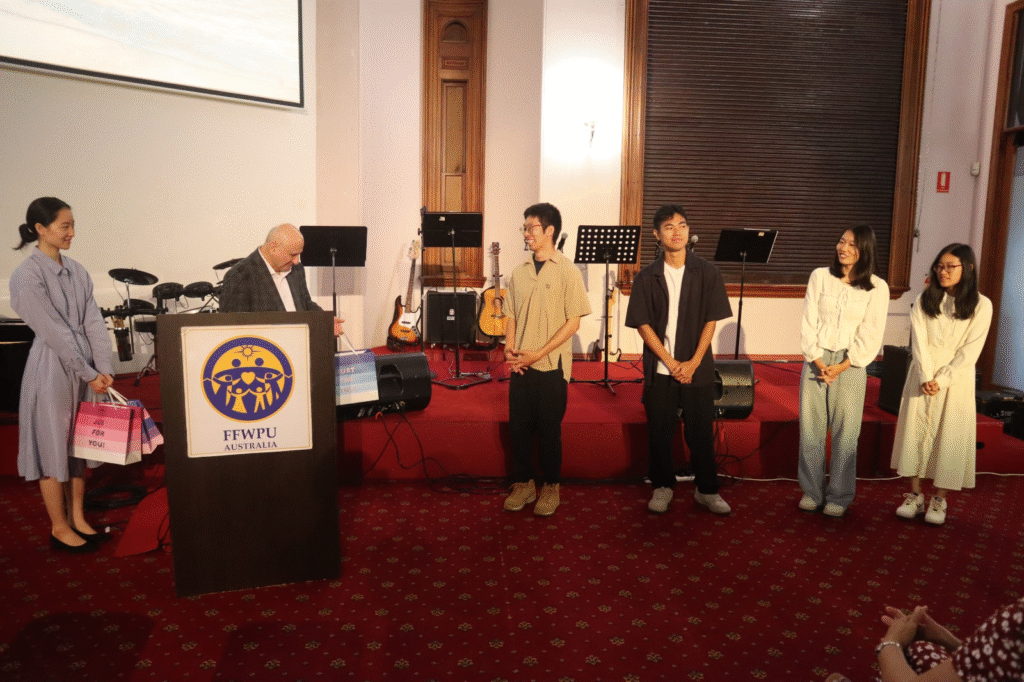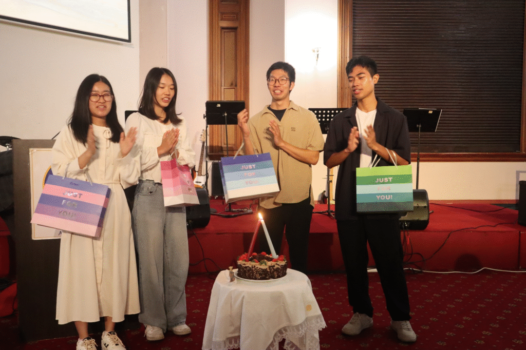After 10 months of service in Australia, four HTG missionaries will return to Korea. On Sunday, we had a moving farewell. It started with the official ceremony soon after the Sunday message, with a 10 min video of all activities initiated by the missionaries in the last 10 months, followed by their personal reflections. Rev John presented each with a gift, then there was cake cutting.
