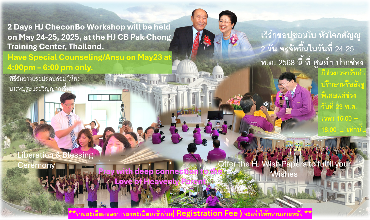 Asia Pacific HyoJeong CheonBo Special Event, a sacred opportunity to receive heavenly grace through the Ancestor Liberation, Ancestor Blessing, Central Evil Spirit Removal, HyoJeong Offering Paper (Wish Paper), Resonance Prayer, Special Ansu, Prayer Vigil, and Chanyang Yeoksa ceremonies. This event brings together members across the region to cleanse the past, inherit heavenly fortune, and offer devotion to Heavenly Parent and ...