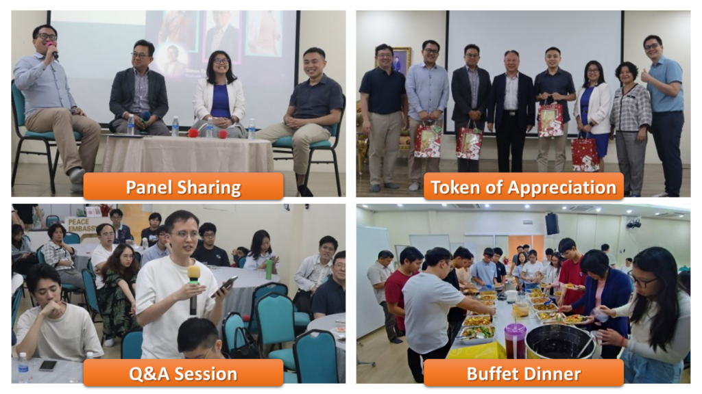 The highlight of the night was the insightful panel sharing session moderated by Bro Simon Teo. The panelists—Bro Aeron, Sis Suzanne, and Bro Wei Qian—represented the professional, women, and youth perspectives. Their sharing was practical and deep, and they spoke with a strong foundation of faith. They also embodied a parental heart and the spirit of a servant. Their sincere reflections touched on real workplace situations, offering wisdom on balancing responsibilities, maintaining integrity, and living out faith in daily work.