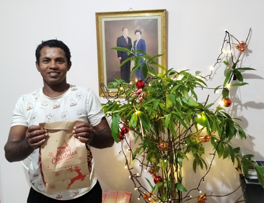 Prayed at Holy ground with the twins, who are matching candidates. Invited Hermana, who is reading True Mother’s Memoir to join CSW praise and pray. Invited Clyde Raus, a matching candidate to attend Farewell and Welcome of Pres Hori and new CD of Asia Pacific Rev. Yamada. He is also continuing his study and preparation. Hermana came one evening after reading the TM Memoir and realized True Father is so handsome. Came over and wanted to help decorate the Christmas tree, a plant from the yard. Ohid, a brother from Bangladesh has received the holy wine with his wife through the phone as his wife is back home. Came to study and received Christmas gift.