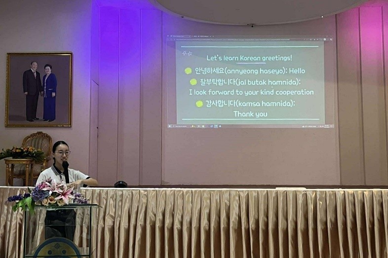 The program opened with a Korean song practice featuring “Monarch Butterfly (제왕나비, Jewang Nabi)”, setting a warm and engaging atmosphere that encouraged unity and participation. This was followed by a Korean language lecture led by Ms. Kim Kana of HTG Korea, introducing the participants to the Korean alphabet (Hangul) and simple expressions. These interactive sessions allowed the youth to experience Korean language and culture in a creative and meaningful way.