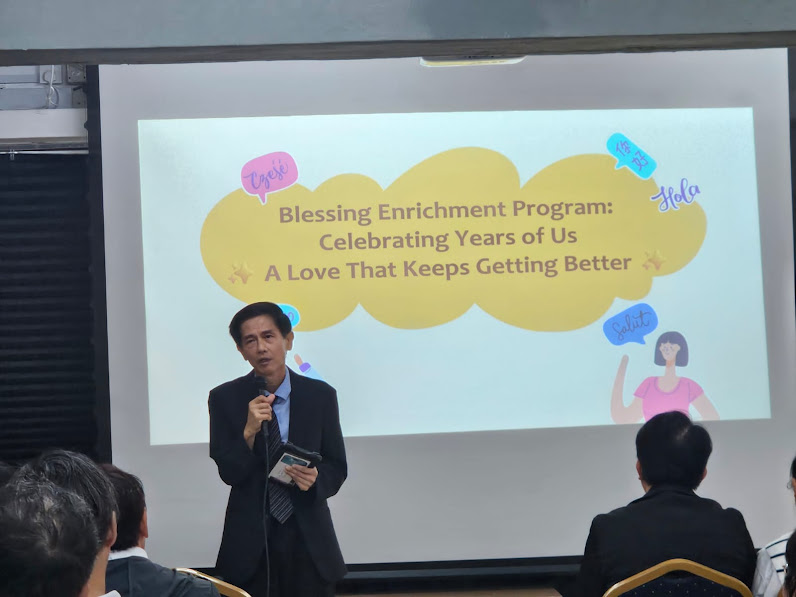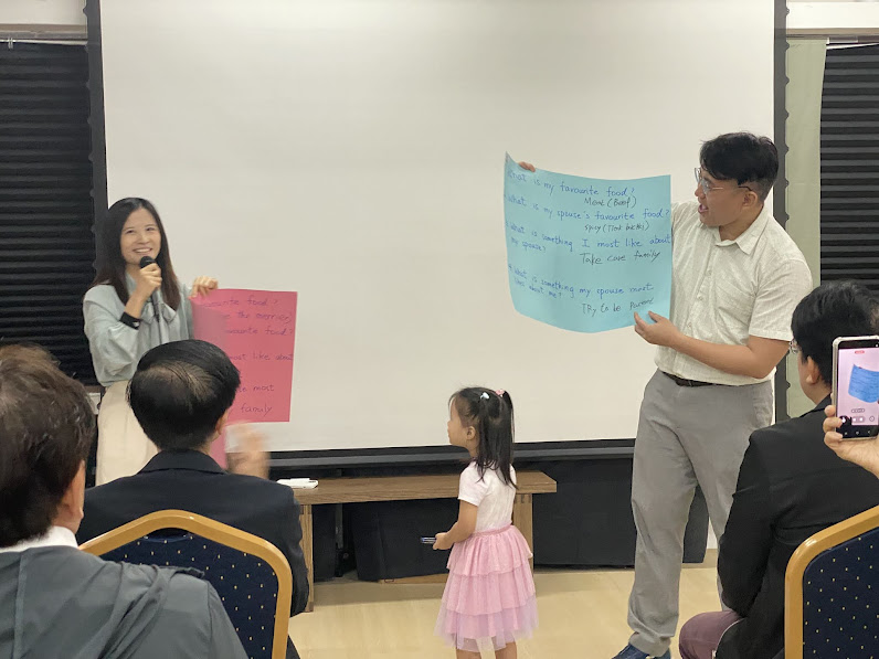 A 1st Gen testimony was then given by Mr. Foong and Mrs. Florence, followed by a 2nd Gen couple, Mr. Jerry Kim and Mrs. Grace Lai, both who shared inspiring words and learnings about their Blessing experiences. The program then proceeded with a sermon by the BFD Director, Mrs. Kristine Rabaño, on a talk about ‘How to Talk About Anything without Ruining the Relationship’, which focuses on key points for effective communication in their relationships. A couples’ activity then followed the lecture, where everyone was split into groups or paired with their partners to reflect based on five guide questions.